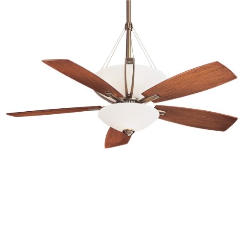 Minka Aire F837-PW 52" 5 Blades in Pewter Finish w/Natural Walnut Blades Integrated Up/Down Lights w/Painted Etched Glass 52"Dia Uplight 6-15W; Downlight 2-50W, Pewter Painted Etched Glass Uplight Candelabra; Downlight Mini-can Halogen 14 Degree Pitch 5 52 Inch Blades 4940 CFM, 78.41 CFM / Watts Integrated Light Kit Full Function Wall Mount Control System with Independent Up/Down Light Control Fea